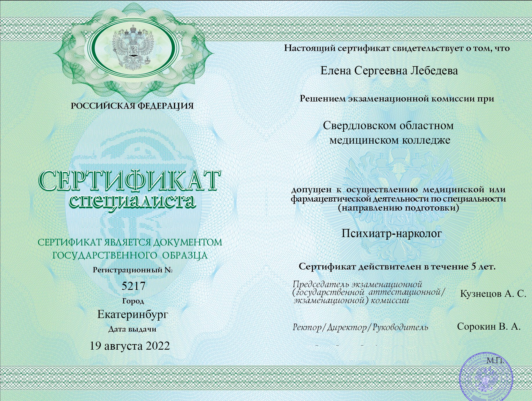 Елена Сергеевна Лебедева врач нарколог клиники доктора Стукаловой в Нее